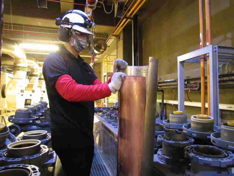 欧陆注册将废弃物转化成有效的工业或民生原物料,,图为废铜液淬炼后再制成纯度极高的铜管