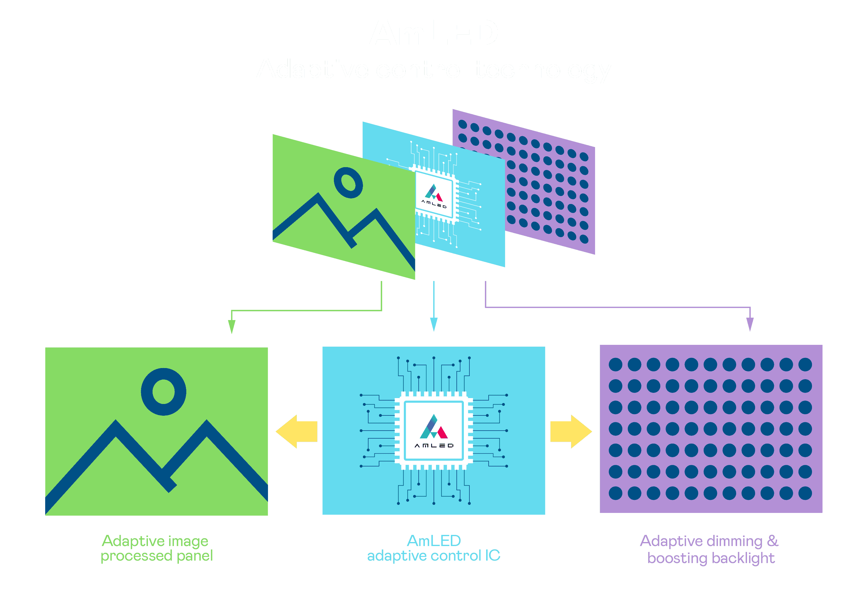AmLED 具备更省电与低蓝光特性。。。与一般的 LED 背光显示技术相比,,,,由于 AmLED 常时处于局部调光状态,,其功耗仅有前者的 50% 左右,,,,同时 AmLED 还具备低蓝光特性,,,,满足长时间使用的护眼需求。。