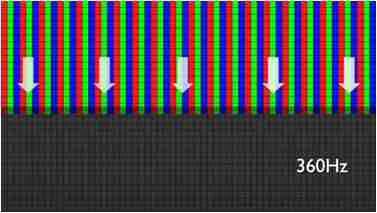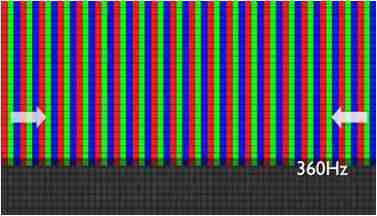 传统液晶驱动是从左到右单向进行,,在画面更新速度愈来越愈快的情况下,,,,位于驱动线路末端的右下角区域,,,,画素的闸极来不及在短时间内获得足够电压,,,无法显示出正确的颜色资讯。。 |